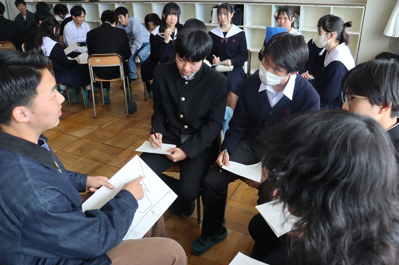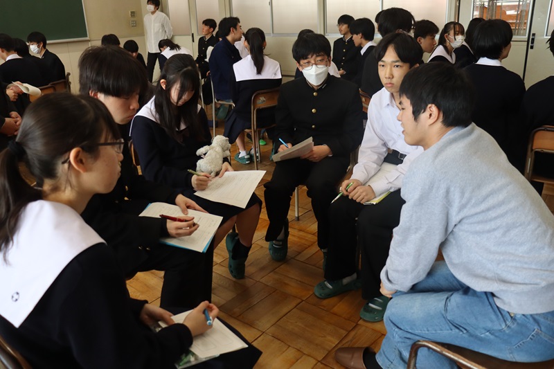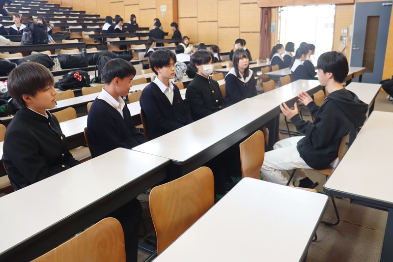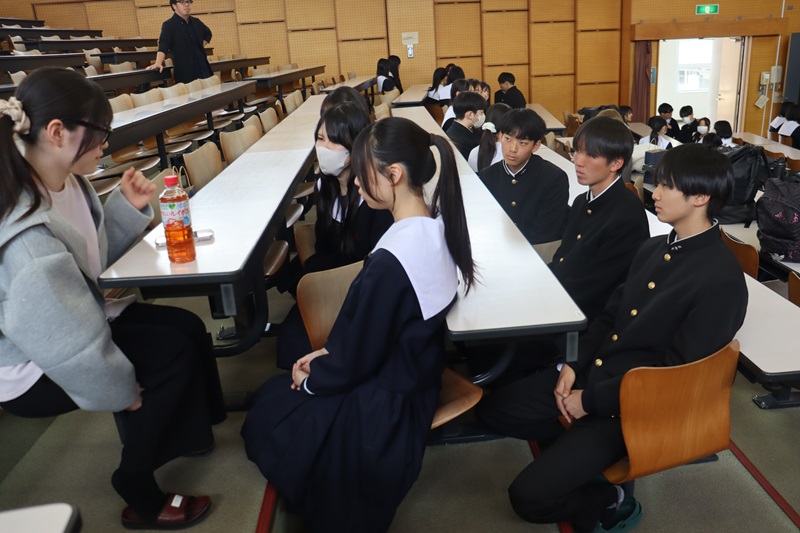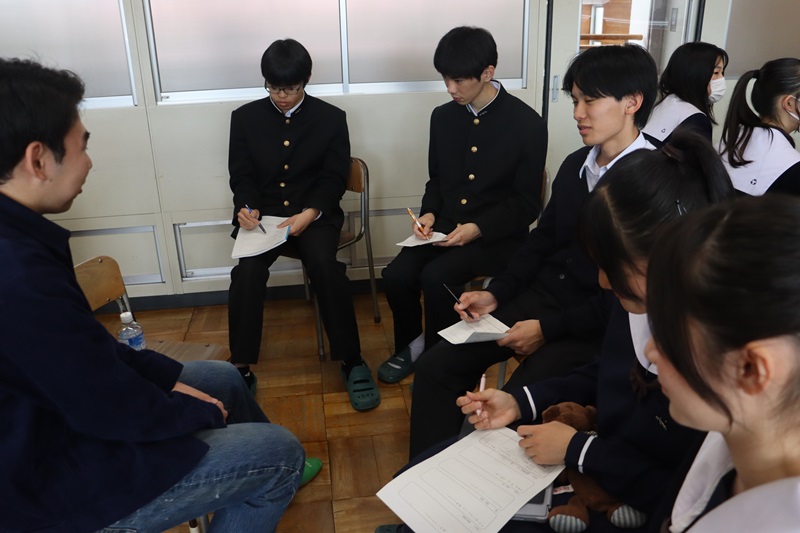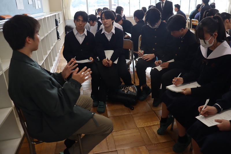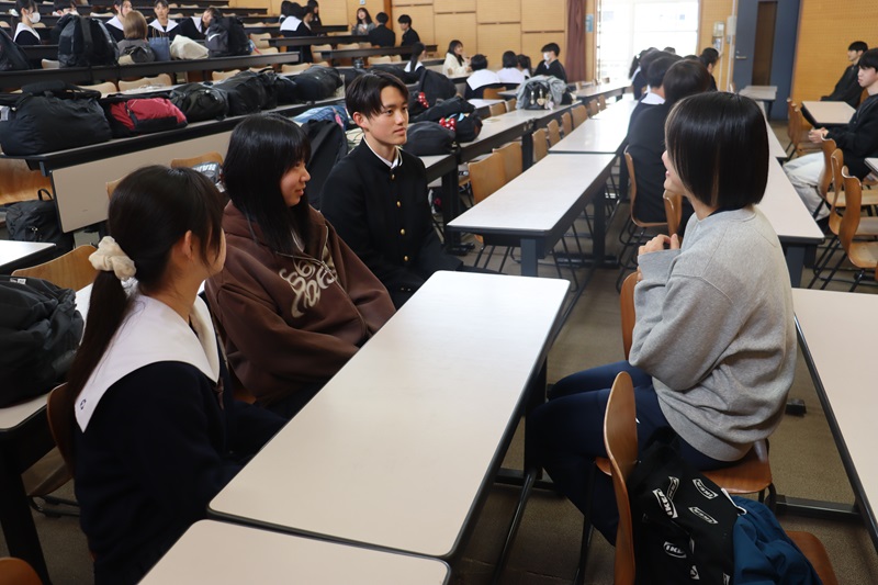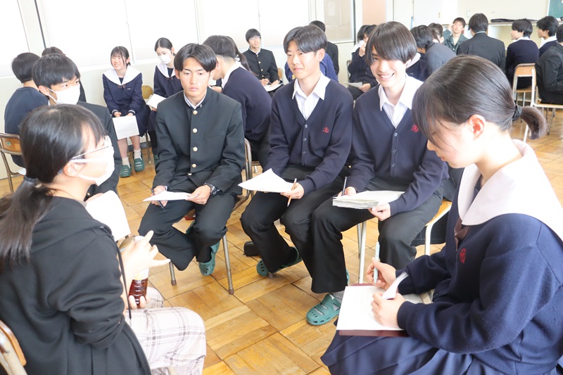 それぞれの分野の国公立大学に合格した先輩をグループで囲み、体験談、勉強法、志望校に臨んだ意気込みなどを聴きました。2年生は積極的に質問したり、自分の悩みを打ち明ける場面もありました。2年生はすでに3年生0学期が終わろうとしています。部活動や学校行事もまだしばらく続きますが、すでに1年後に向けて走り出しています。